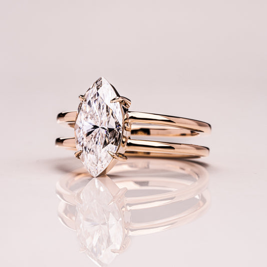 1.58 CT Marquise Solitaire & Double Shank Lab Grown Diamond Engagement Ring