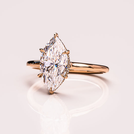 0.9 CT Marquise Hidden Halo Lab Grown Diamond Engagement Ring