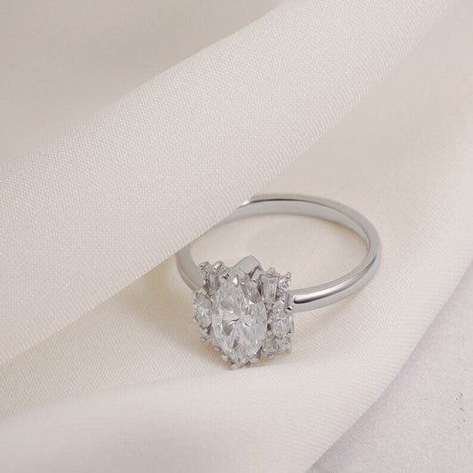 2.0 CT Marquise Cluster Lab Grown Diamond Engagement Ring