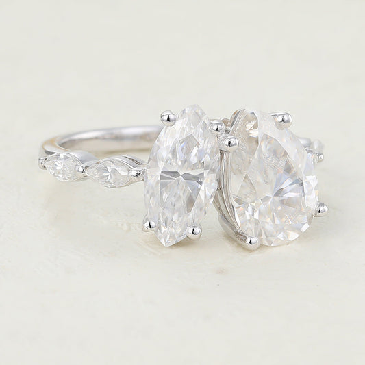 2.5 CT Marquise & Pear Two Stone Lab Grown Diamond Engagement Ring
